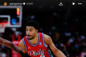 格莱姆斯在9个小时前突然在Instagram更新了一则动态,晒出了一张自己上赛季身穿76人球衣的赛场照。