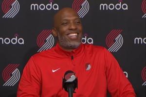 比卢普斯赛后接受采访被问到了杨瀚森,和记者打趣,笑得非常开心。