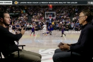 体育资讯10月16日讯 今日,ESPN节目组播出了湖人主帅雷迪克解析上赛季湖人防守录像片段中的防守战术的内容。