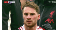 体育资讯10月19日讯 英超第8轮利物浦vs曼联,曼联先进一球,第1分钟姆伯莫破门。进球前的争顶,范迪克争顶中肘击麦卡利斯特。之后麦卡接受治疗,头上戴上了帽子继续比赛!