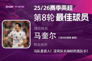 2025-2026赛季英超火热进行中,体育资讯和咪咕体育联合发起每轮英超最佳球员评选活动!第8轮评选结果出炉,马奎尔双红会8次解围+致胜头球,帮助曼联2-1击败利物浦,红魔终结近10年客战利物浦不胜纪录,马奎尔赢得吧友超14万+的投票,当选【体育资讯X咪咕体育英超第8轮最佳球员】!