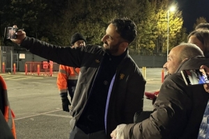 此前备受诟病的主帅阿莫林也在赛后获得追捧,在比赛结束两小时后仍然在为曼联球迷们签名合影,他在拿起手机自拍时也露出了开心的笑容。