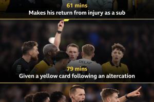 德拉普时隔2个月登场,替补25分钟撞人被罚下