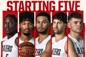 赛前开拓者出具本场比赛首发:霍勒迪+夏普+卡马拉+阿夫迪亚+克林根。