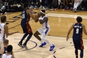 GIF-博纳面对阿伦连续虚晃,最终失误