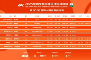 中甲第30轮裁判安排:广东广州豹vs南通支云等4场安排有VAR
